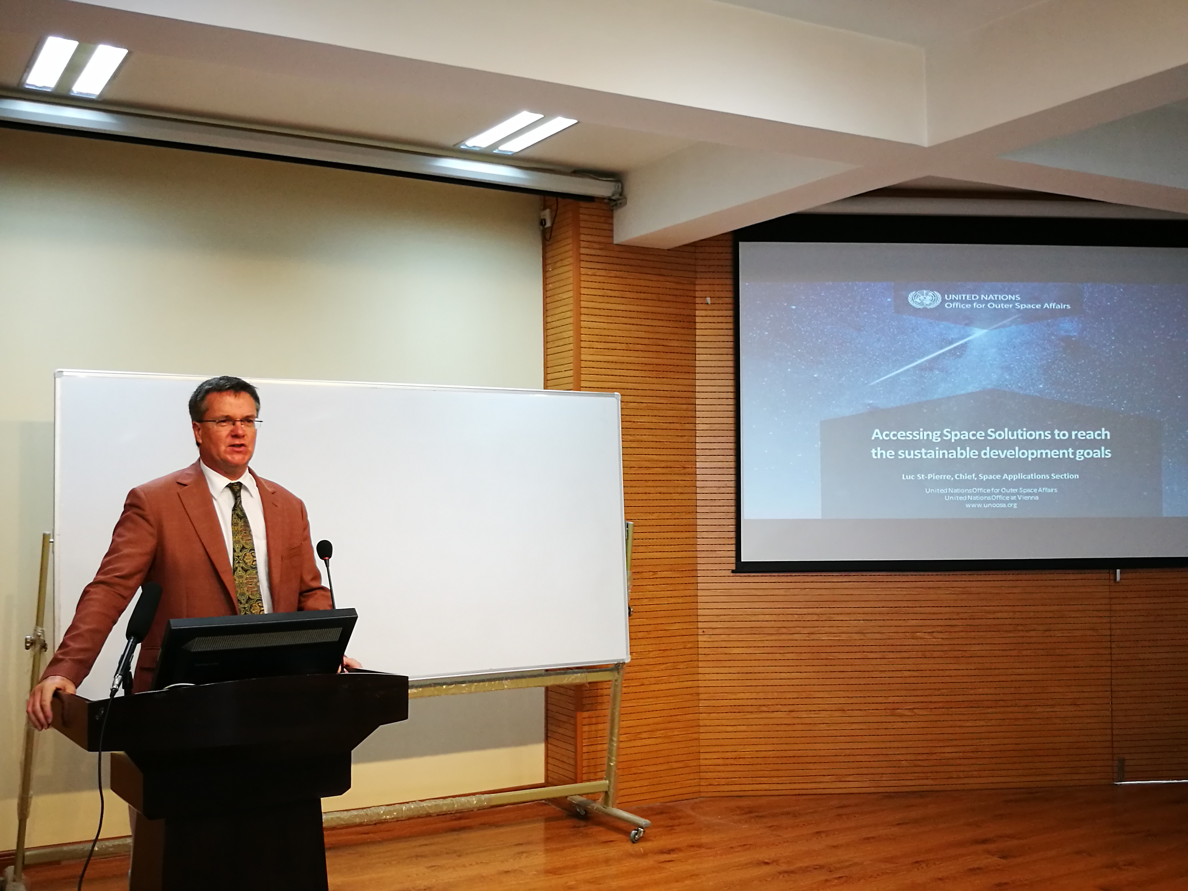 2017年6月30日上午,联合国外空司空间应用处处长,加拿大地理学家科学家吕克·圣皮埃尔先生做客我校翱翔名家讲堂,为广大师生做了题为Accessing space solutions to reach the Sustainable Development Goals的报告。365国际娱乐平台副院长刘佩进、365国际娱乐平台党委副书记张永福出席报告会,报告会由刘佩进副院长主持。