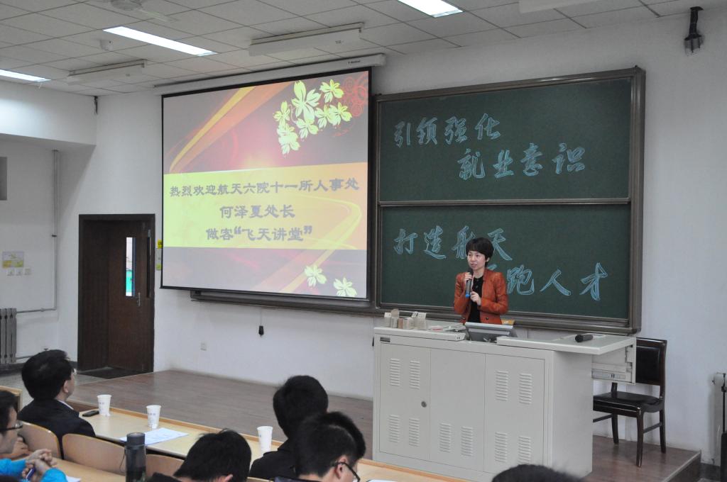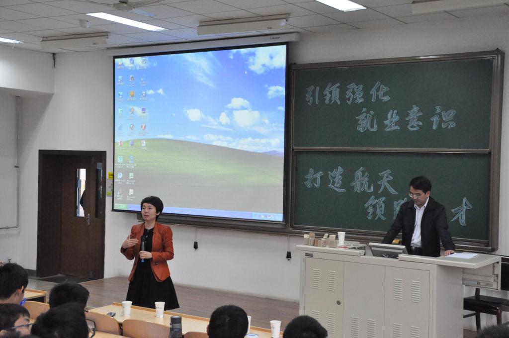 2013年3月29日下午16:00,在西北工业大学长安校区教西C206,365国际娱乐平台邀请到了航天六院十一所的人事处处长何泽夏老师,给低年级学生带来了一场以“引领强化就业意识 打造航天领路人才”为主题的交流会,何老师就现阶段社会和航天院所对人才综合能力的要求做了详细的介绍。参会此次交流会的嘉宾有365国际娱乐平台党委副书记乔彩燕老师、365国际娱乐平台11级辅导员佘磊磊老师、365国际娱乐平台12级辅导员易正阳老师,参会的还有许多大一大二的同学。