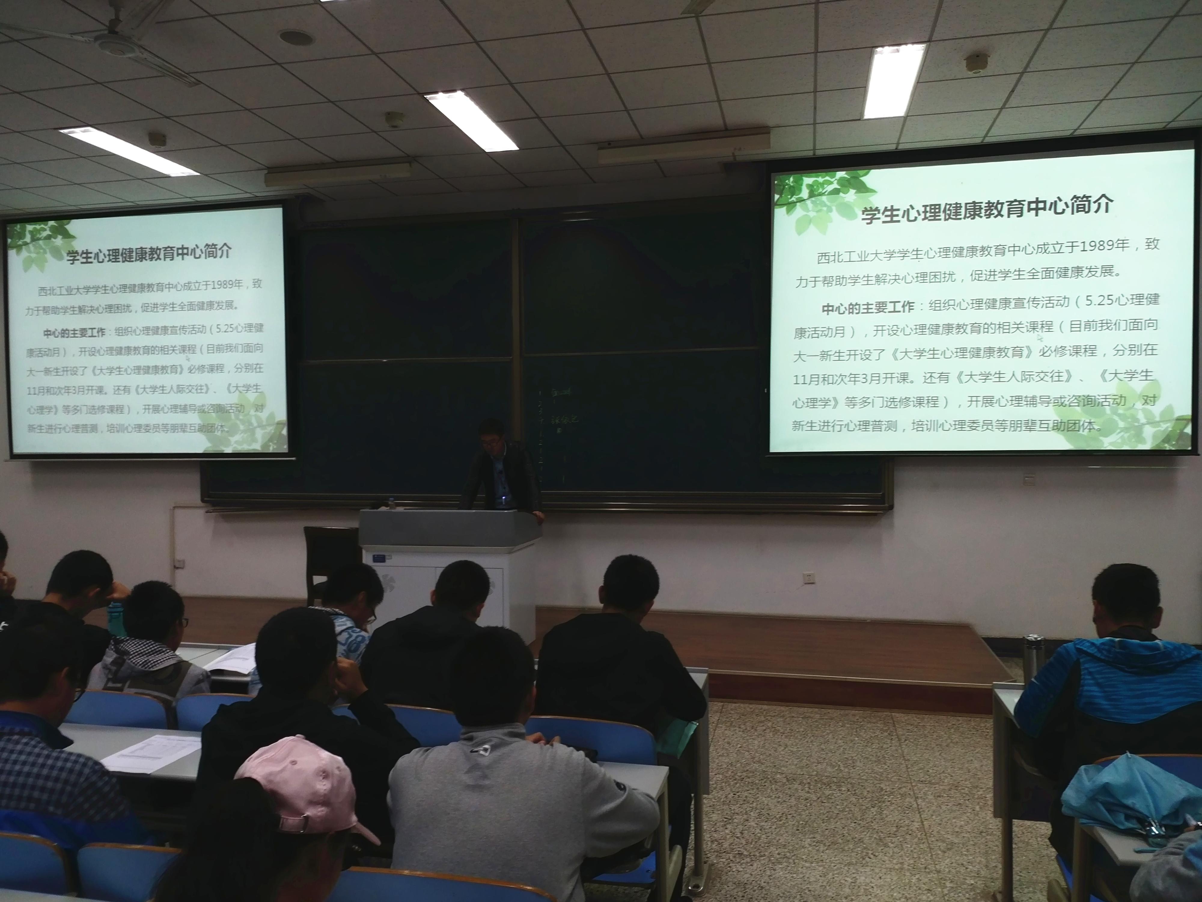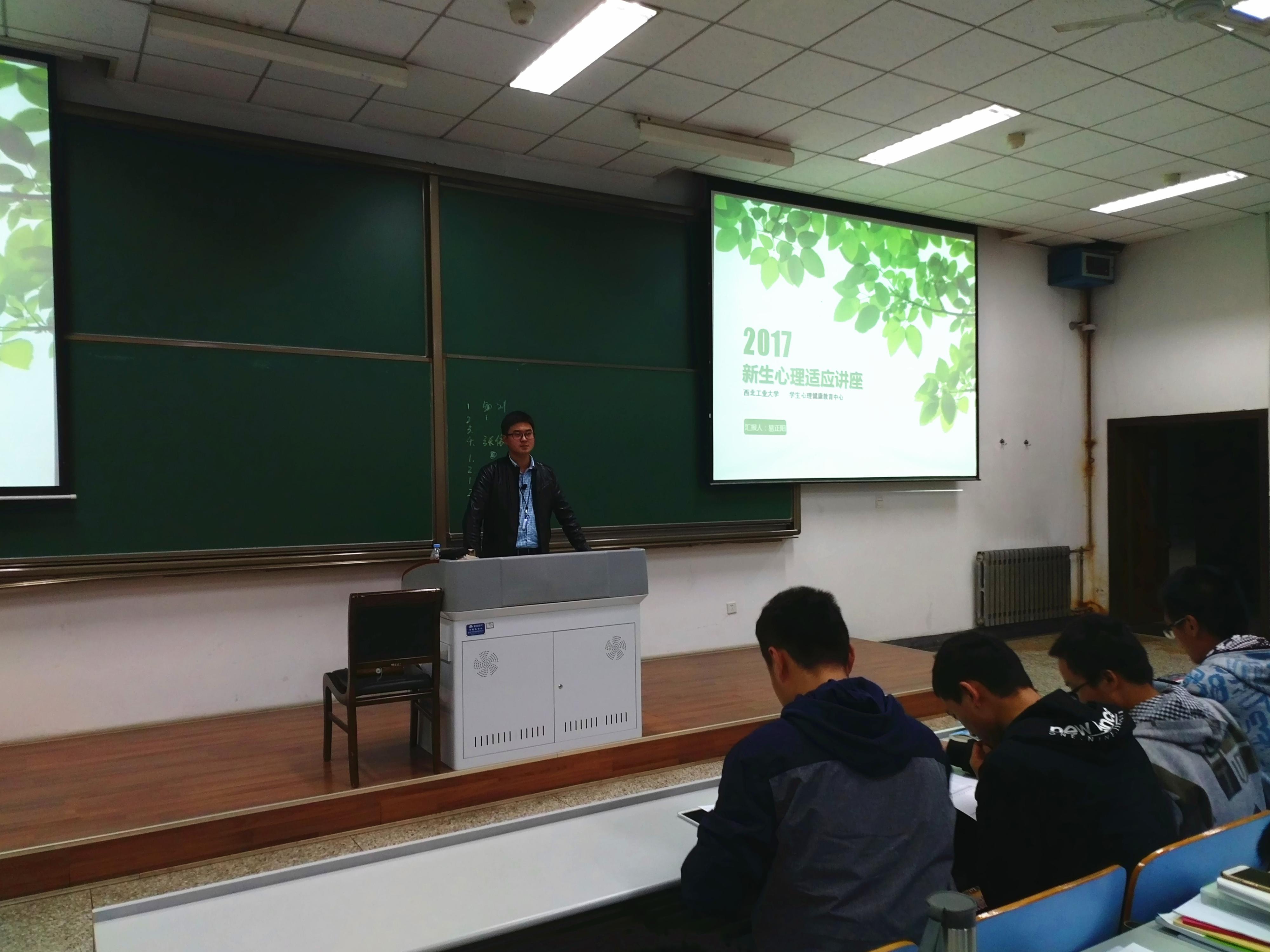 心理健康是健康的重要组成部分。为帮助365国际娱乐平台2017级本科新生尽快适应大学生活,2017年10月16日晚9:00,在学校学生心理健康教育中心的指导下,我院开展了2017级本科新生心理适应讲座,由易正阳老师担任主讲老师,全体365国际娱乐平台2017级本科生参加此次讲座。此次讲座在新生心理测评结果解释、新生心理适应问题以及心理健康调节方法等方面与同学们进行了深入地交流和探讨。