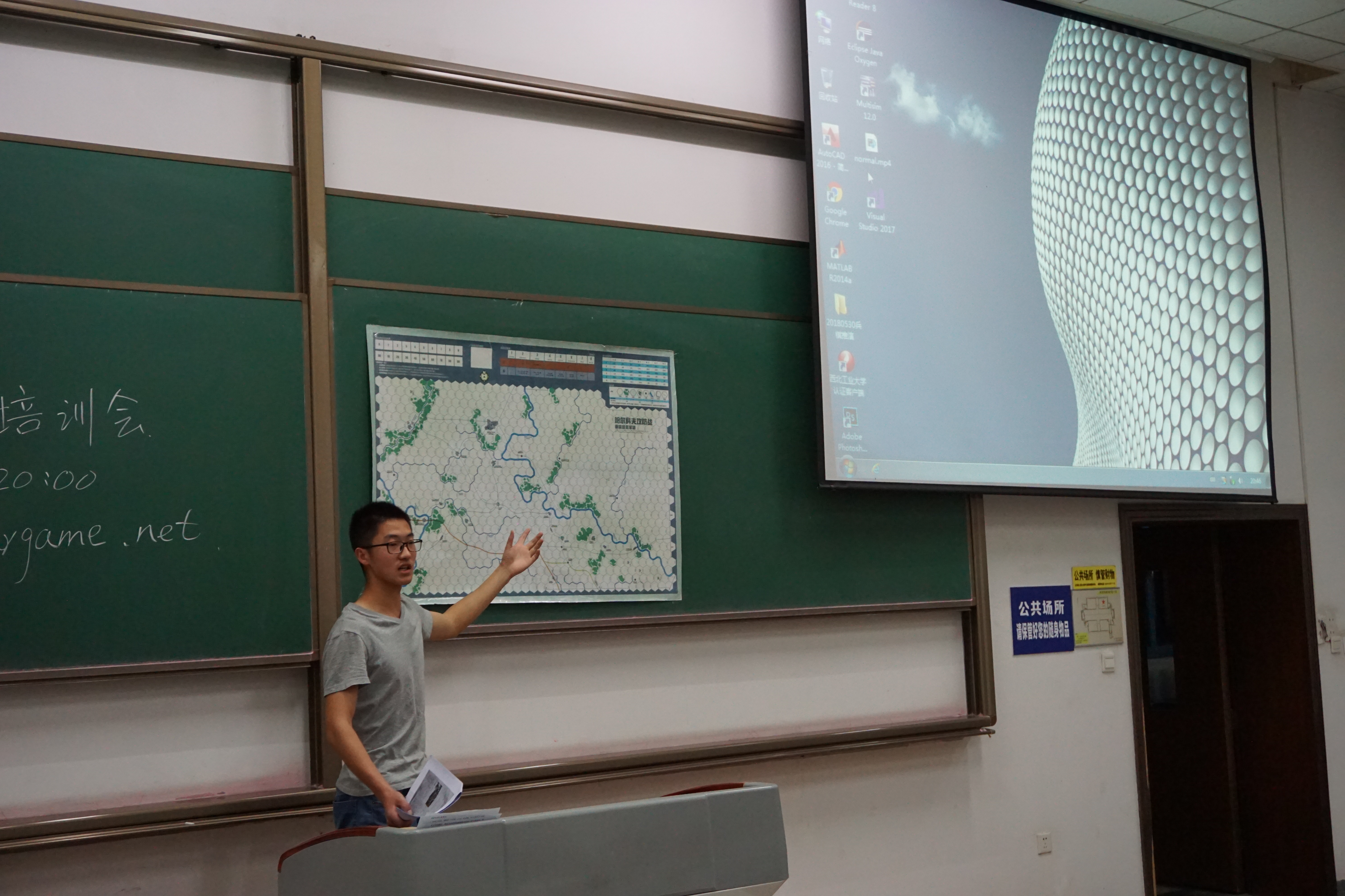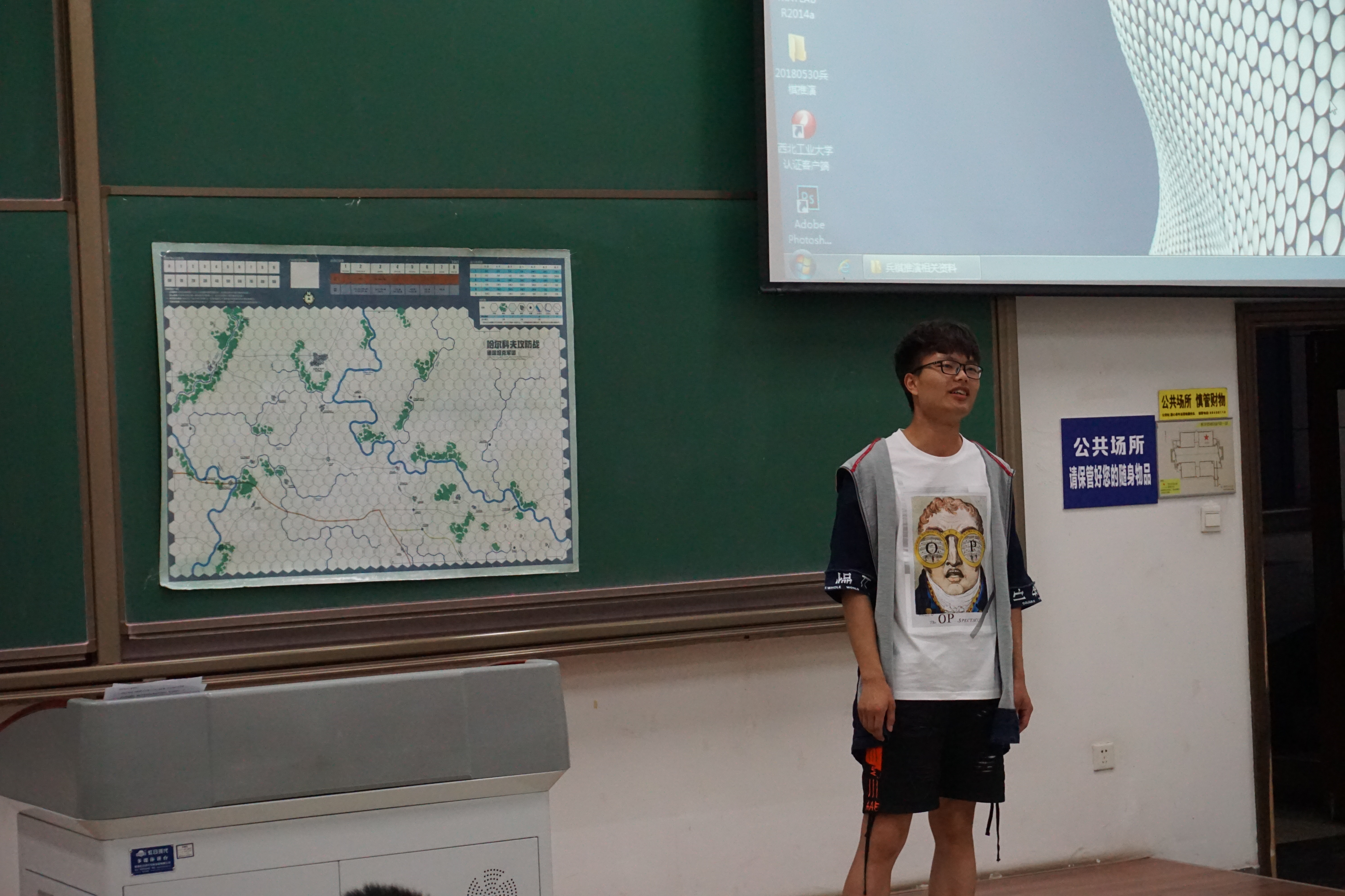 5月30日晚,2018年西北工业大学兵棋推演对抗赛培训会在长安校区举行。培训会由西北工业大学兵棋推演对抗赛负责人刘双喜主持。会议上,刘双喜介绍了兵棋推演的含义和西北工业大学兵棋推演项目的发展过程,以及首届西北工业大学兵棋推演对抗赛组织情况和全国兵棋推演大赛的筹备情况,鼓励大家积极参与兵棋推演系列活动。裁判员蒋天瑞对本次对抗赛使用的兵棋战略背景和规则进行了说明介绍。