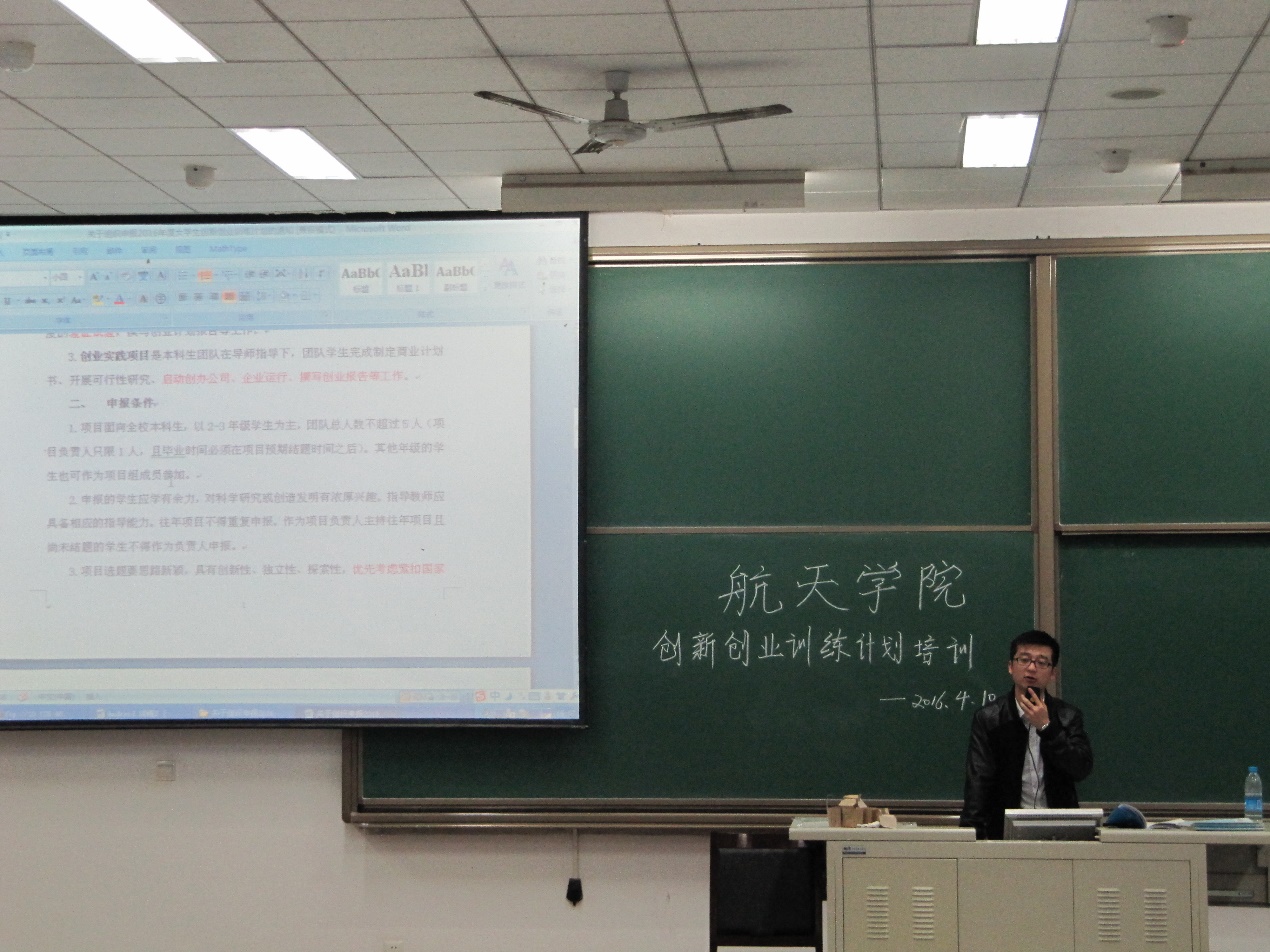 首先,高戈简要介绍了创新训练项目、创业训练项目以及创业实践项目三者之间的区别,让大家对自己将要立项的项目有了清晰的认识。随后,他就申报条件、申报填表的注意事项作了阐述,提醒同学们要简洁美观地填写申报信息。随后,李伟老师上台为大家作报告。他结合华航泽睿、马靖东等创新创业的成功案例,概括性地介绍了创新创业项目的整体情况。随后,他对项目申请表中立项依据一项的填写做了详细解读。他指出,要关注国内外相关领域的研究现状和发展动态,明确立项的目的,寻求项目特色,并将创新点清晰反映在立项依据中。他结合具体事例,详细介绍了财务处理的操作方法,并着重强调了经费申请和开支的注意事项,提醒同学们要详细记录财务开支,做到财务透明。最后,李伟老师就同学们提出的问题做出了解答。