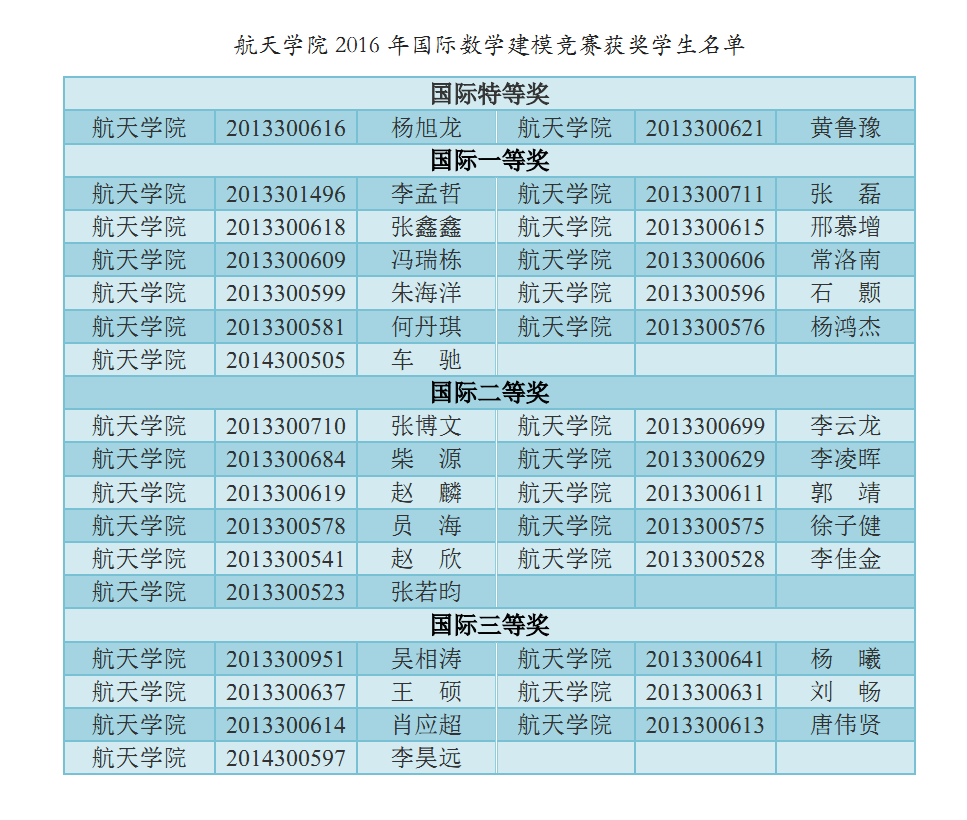 365国际娱乐平台2016年国际数学建模竞赛获奖学生名单