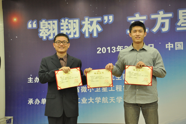 “守望者号小卫星”,“伞状小卫星”,“抽拉式附加太阳能板立方星”,“QB50立方星电源系统”等参赛作品荣获三等奖。“LLR-Sat立方星”,“Dream-Cube”,“遨游微小卫星”,“银白之翼”,“立方星控制系统设计”,“立方星电源系统设计”等参赛作品获得优秀奖。